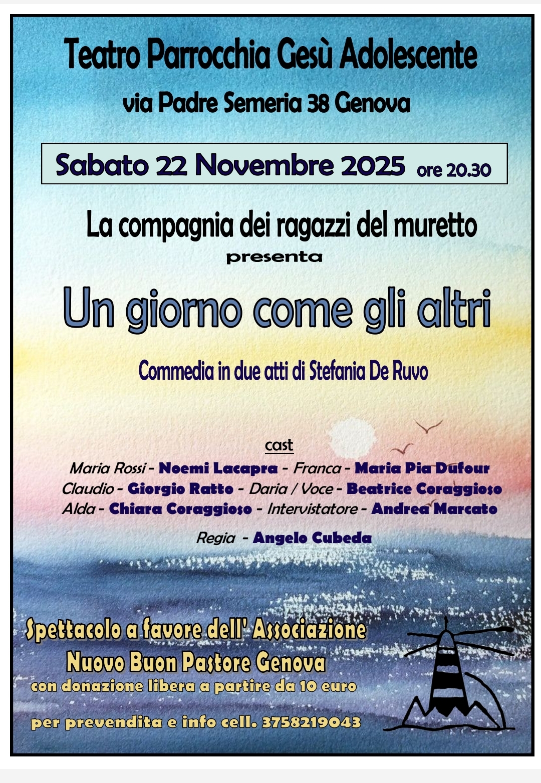 Sabato 22 novembre 2025 ore 20:30 - Teatro Parrocchiale Gesù Adolescente, Via Padre Semeria 38, Genova.