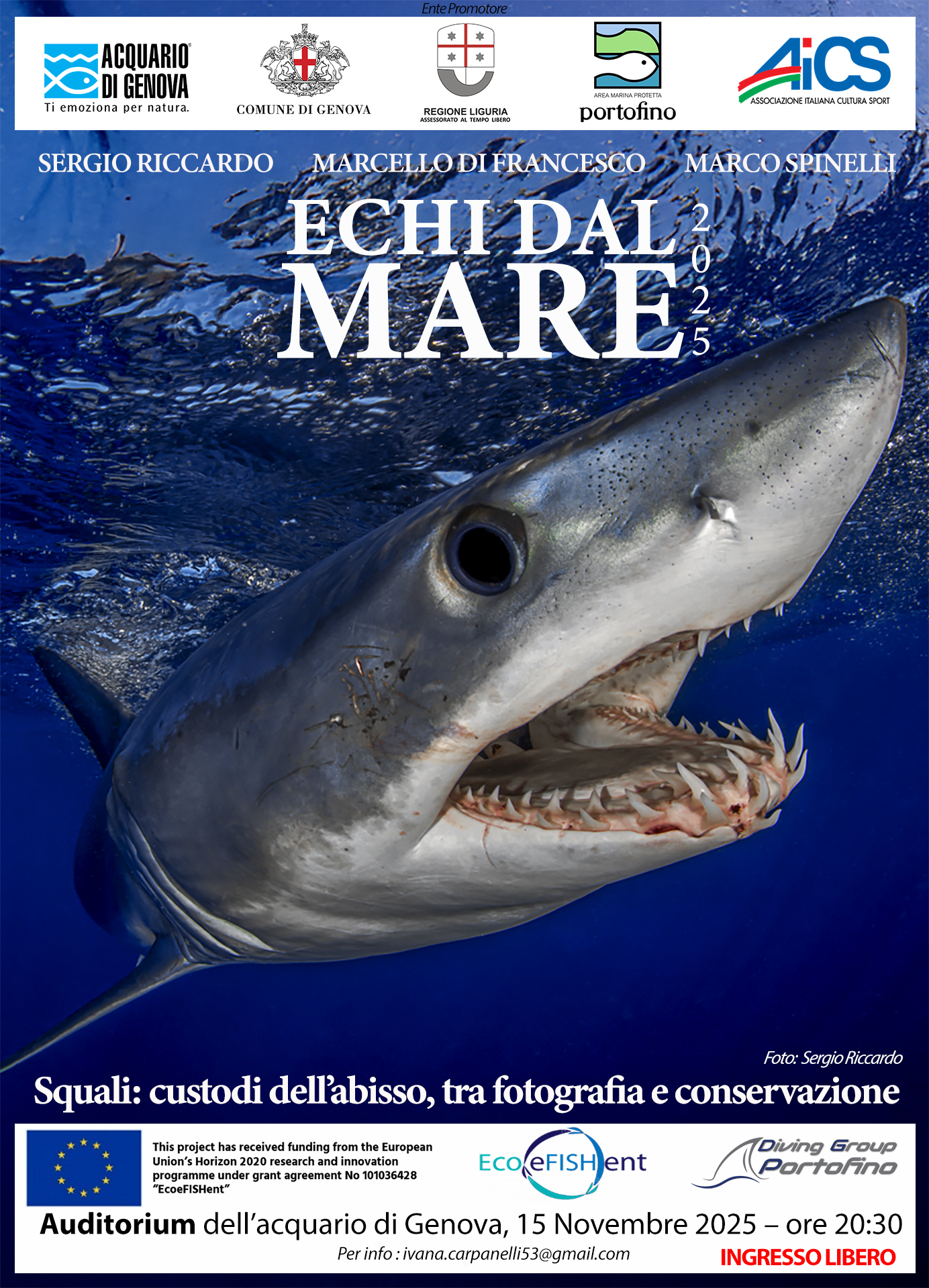 Sabato 15 novembre 2025 ore 20:30 na serata speciale all’Auditorium dell’Acquario di Genova, dedicata al fascino e al mistero del mare. Nell’ambito del ciclo di incontri “Echi dal Mare”, si parlerà di squali, creature spesso temute ma fondamentali per l’equilibrio degli ecosistemi marini.