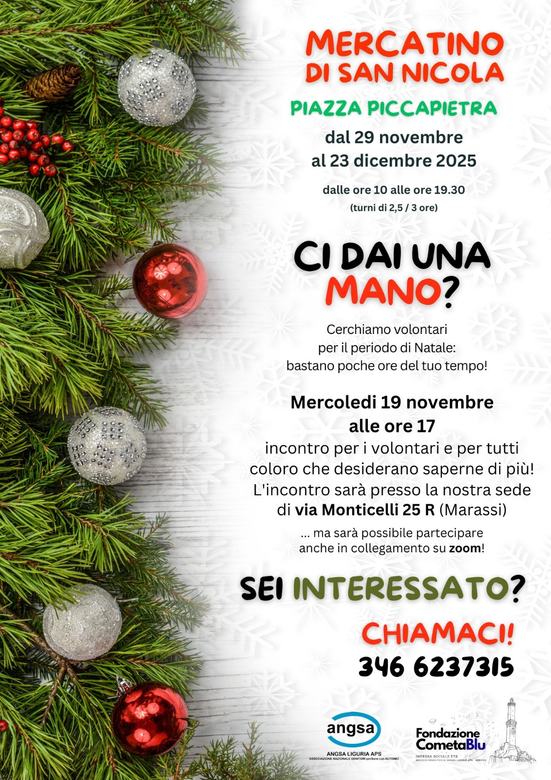 INVERNO SPECIALE VOLONTARIATO: Angsa Liguria APS ricerca volontari per dicembre al Mercatino di San Nicola