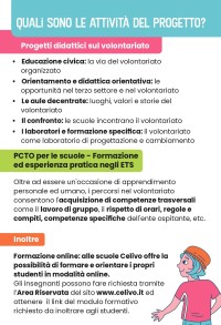agli insegnanti le proposte formative che Celivo, offre attraverso il Progetto